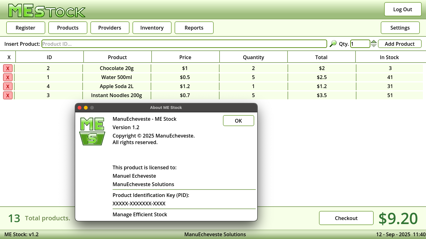 ME Stock is a point-of-sale and inventory management desktop app designed for small businesses.